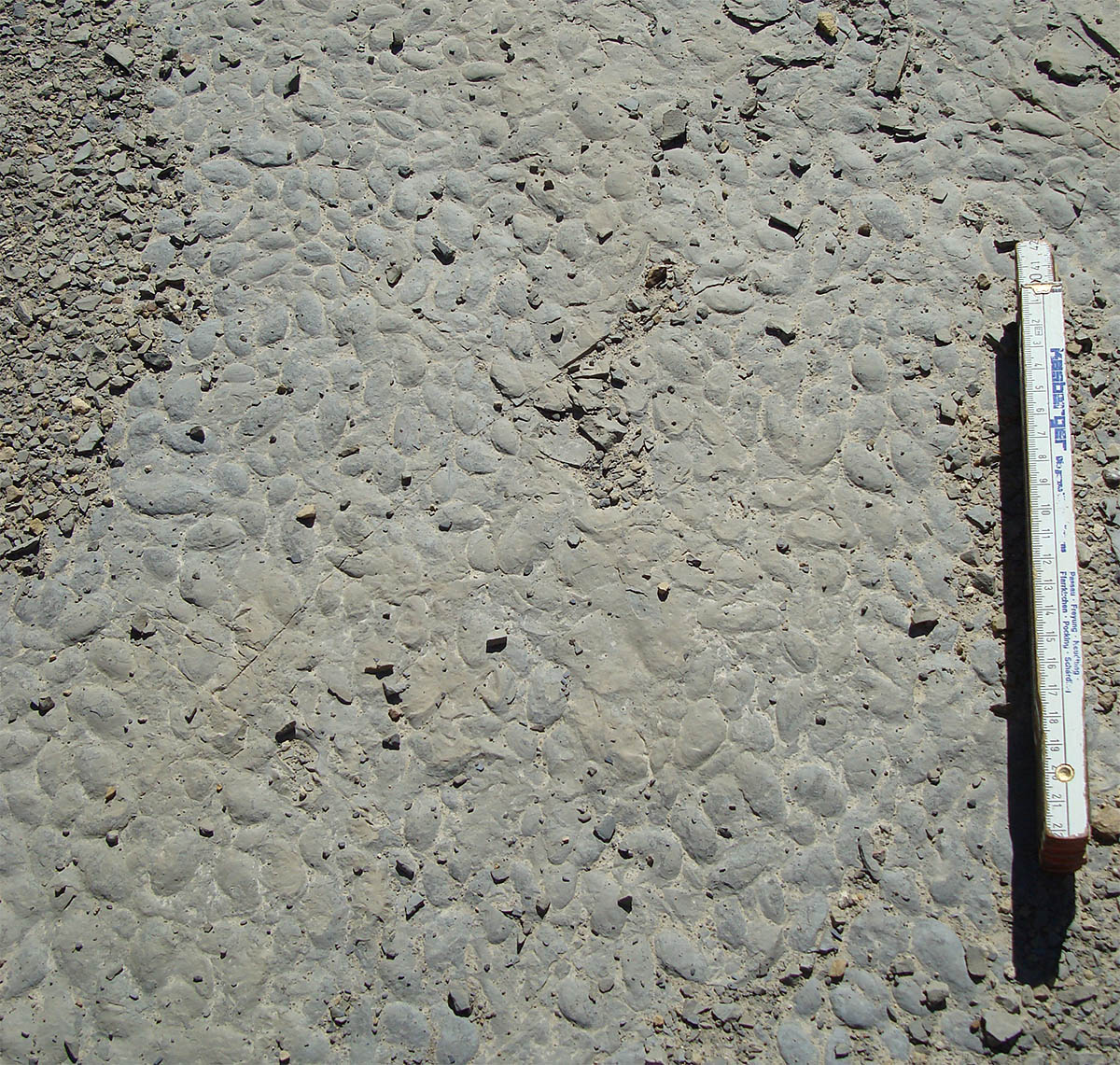 Flächiger Aufschluss des Grenzbonebeds |