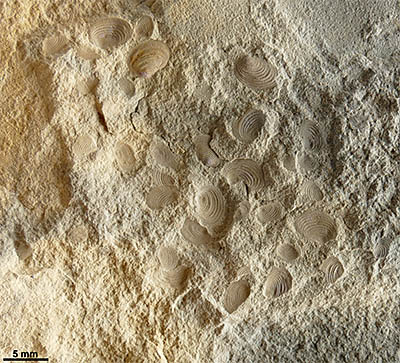 Schalentümmerbank mit Costatoria goldfussi |